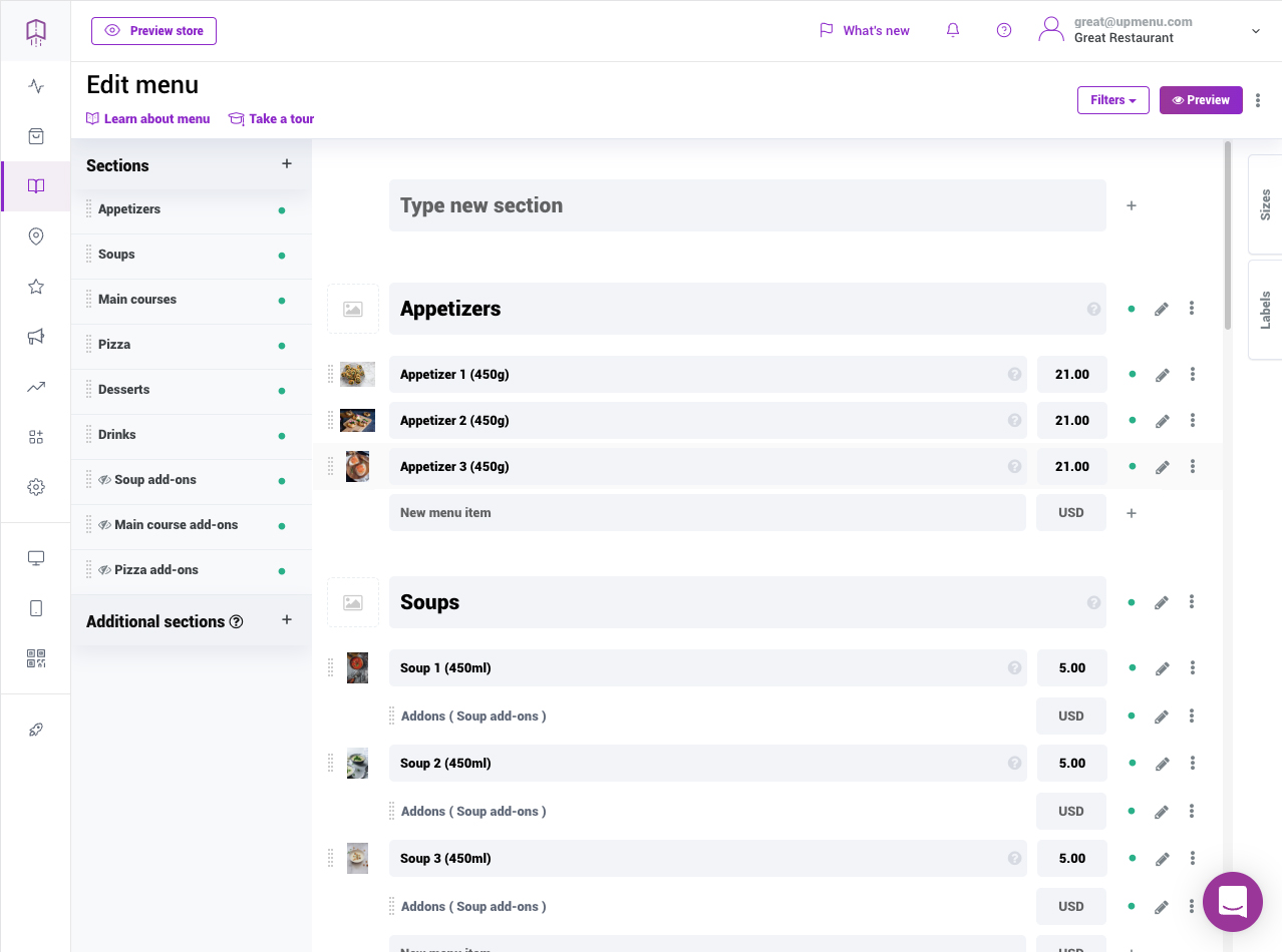 Additionally, it allows restaurants to manage their online menus, inventory, and customer data. UpMenu also lets users create targeted marketing campaigns and promotions sent via SMS, push and email, as well as restaurant loyalty programs to increase in-house and online orders.