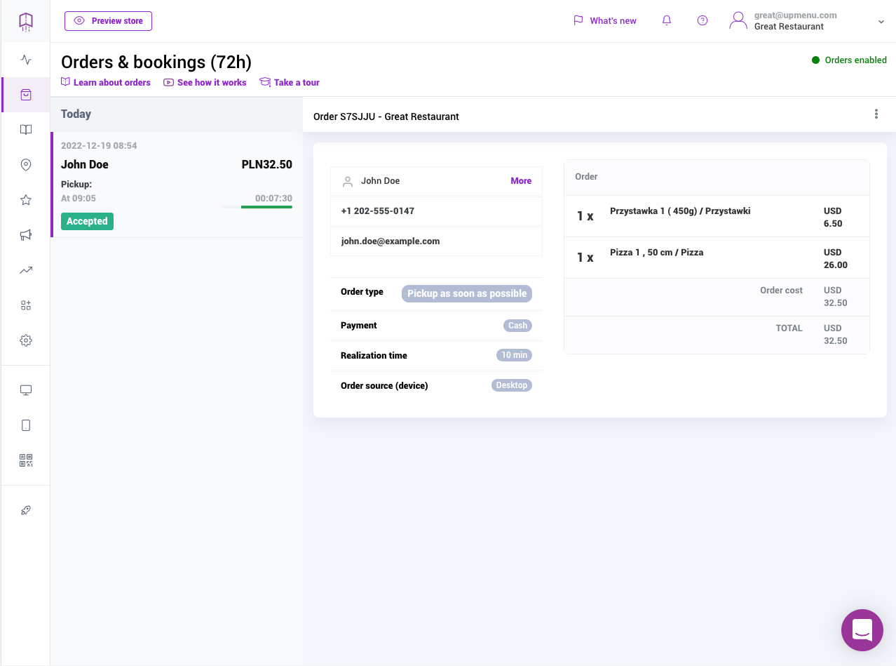 - Online order management: This allows your team to easily accept incoming online orders and begin working on them right away.