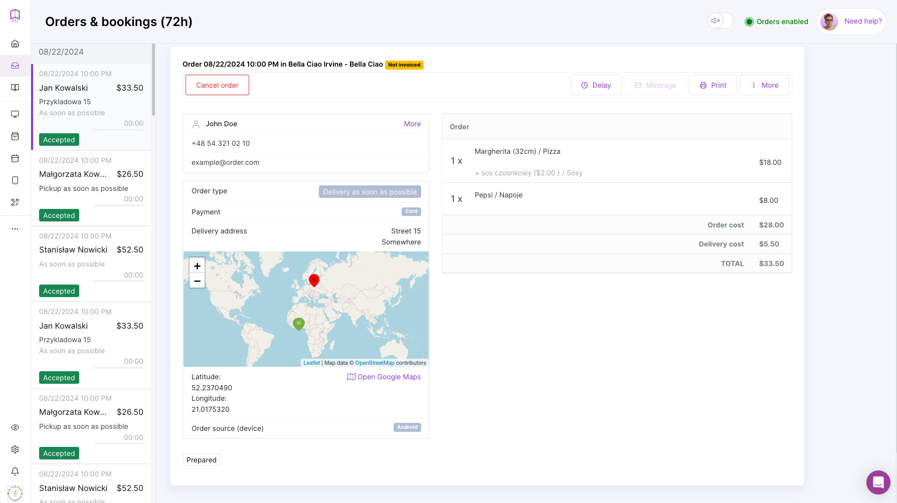 - Integrated with 3rd party systems (POS, delivery, online payments, marketplaces)