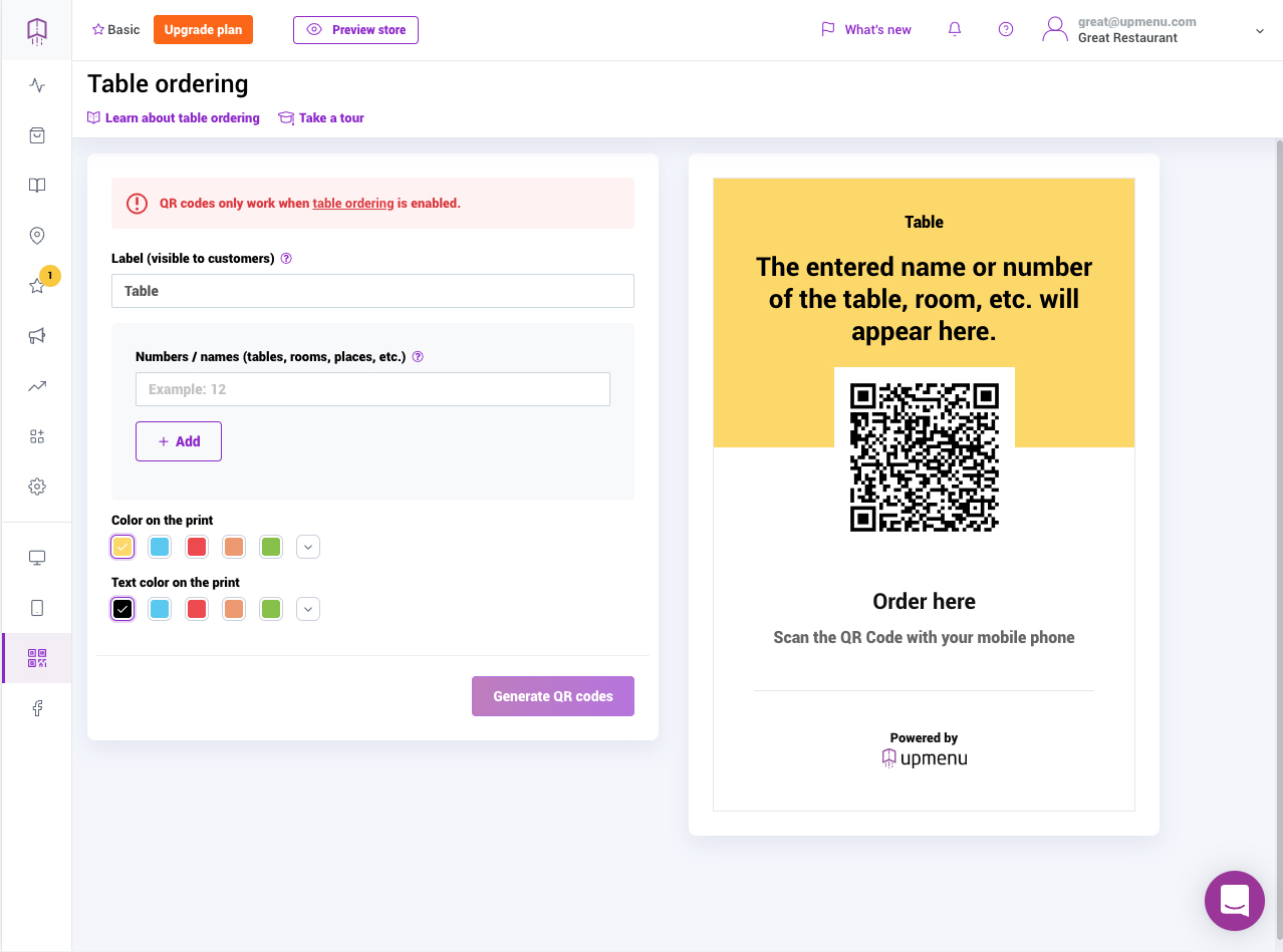 - Tableside Ordering: Contactless ordering with QR code scanning.