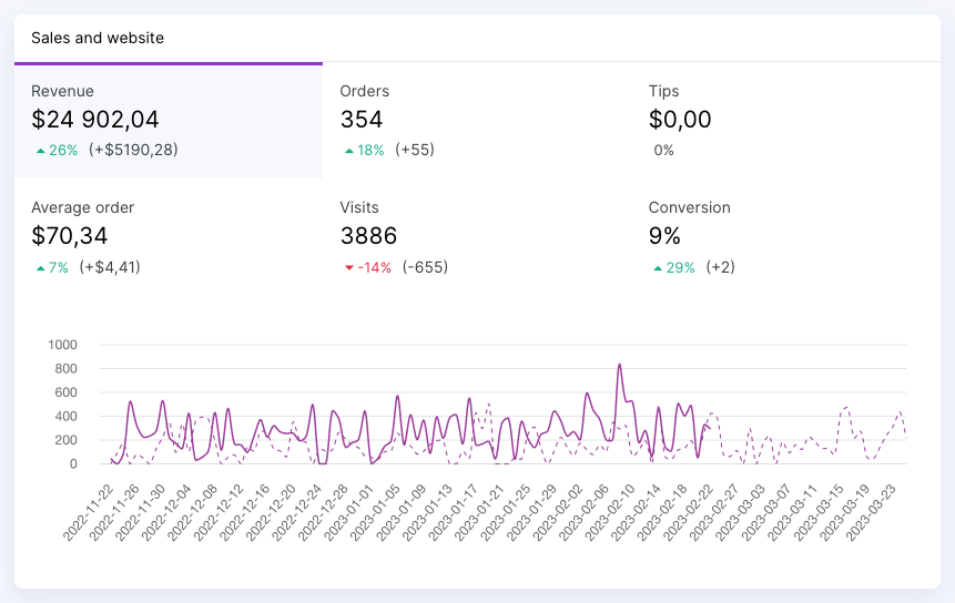 Implementing a local SEO strategy can significantly impact a restaurant’s performance. Let’s take a closer look at one of the UpMenu clients, Pizzeria Soprano, which integrated SEO into its marketing strategies from November 22, 2022, to February 22, 2023. Compared to the previous period, the results demonstrated notable improvements in various business metrics.
