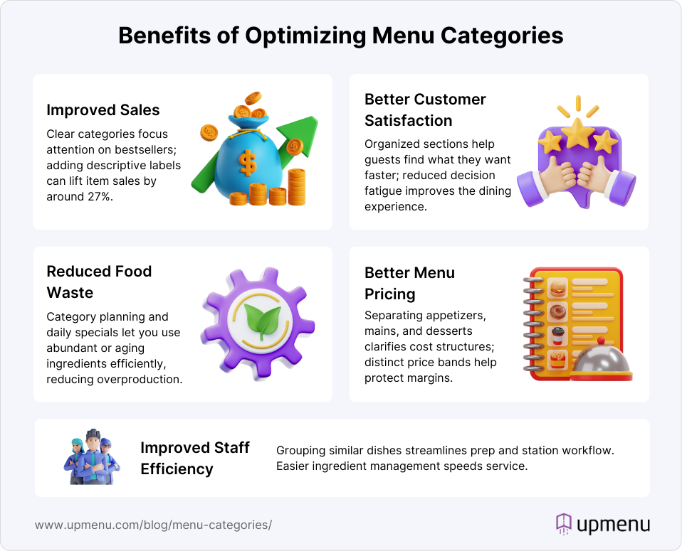 Infographic showing benefits of optimizing menu categories