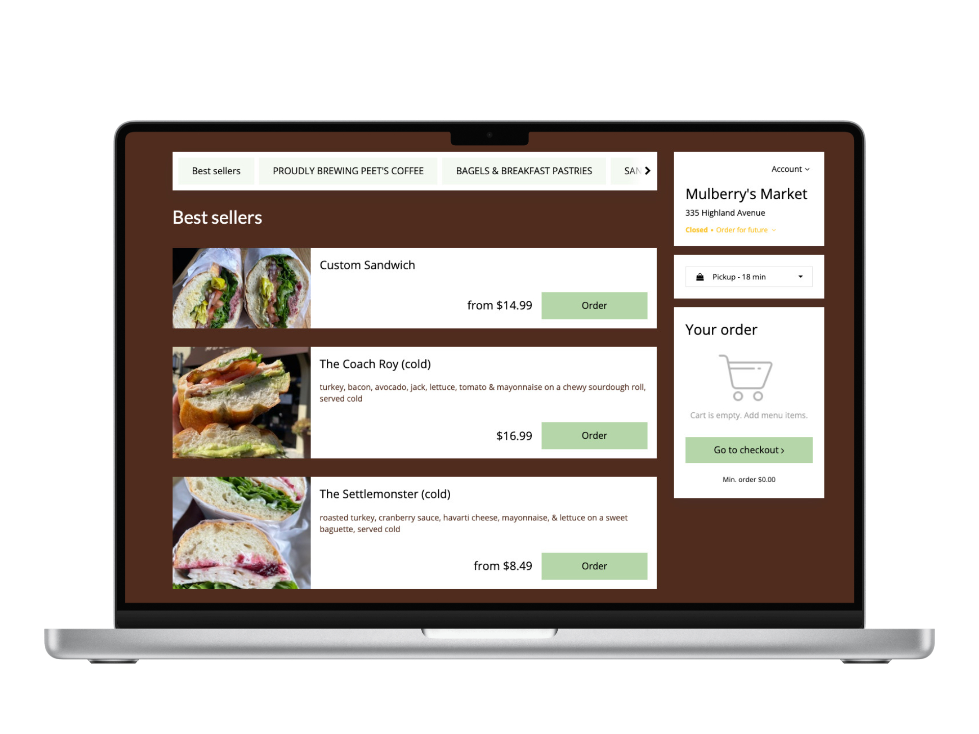 To support its digital growth, Mulberry’s Market implemented several UpMenu products designed to simplify ordering and improve the customer experience.