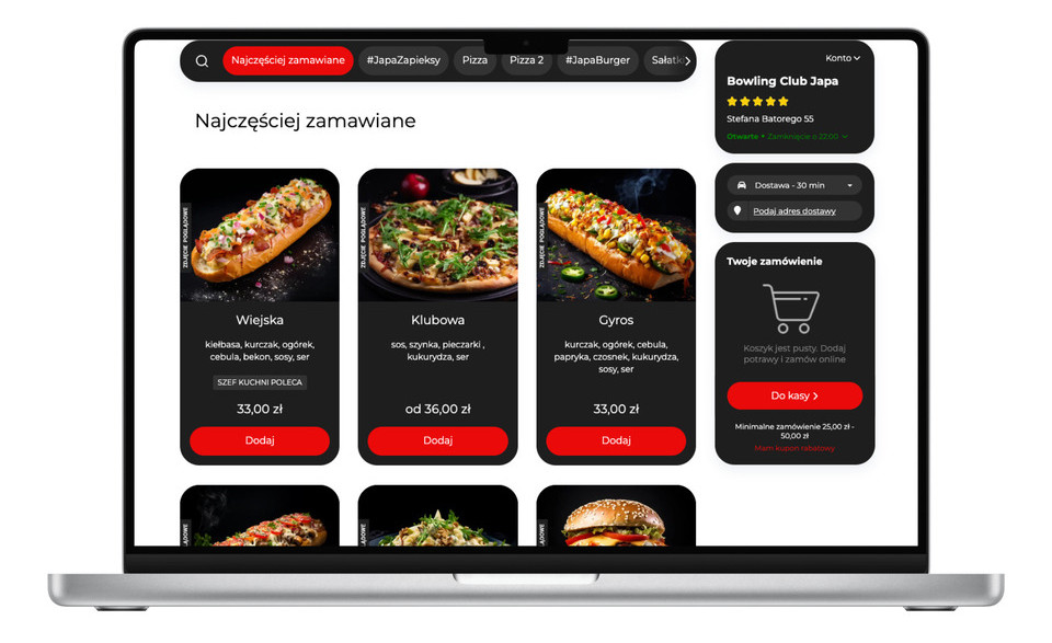 Aby przejąć pełną kontrolę nad procesem zamawiania i uniezależnić się od kosztownych pośredników, Bowling Club Japa uruchomiło bezpośredni system zamówień online w oparciu o UpMenu.