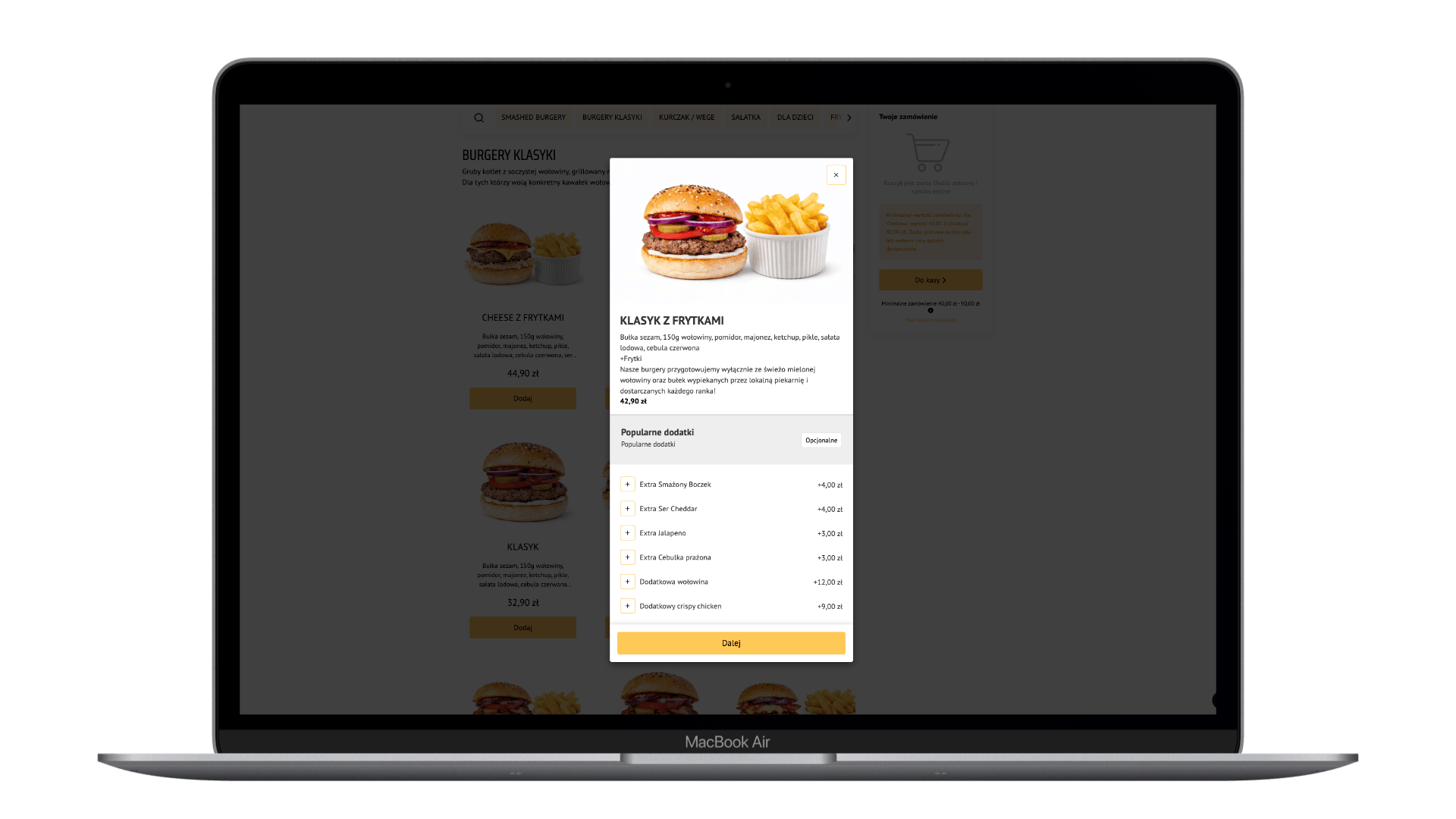 Strona uzupełnia aplikację i generuje pozostałą część sprzedaży. Całość zamówień trafia bezpośrednio do restauracji — bez prowizji i bez utraty relacji z klientem.