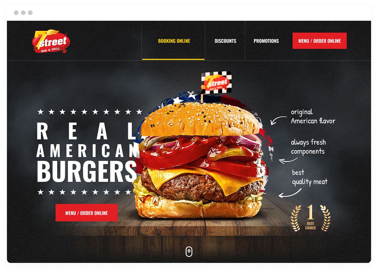 Nowa strona zaprojektowana jest tak, aby klient od razu kierowany był do zamówień online. Ogromne zdjęcia produktów 7th Street wykonane w koncepcji “food porn” zaostrzają apetyt, a dobry, font tekstu przykuwa uwagę.