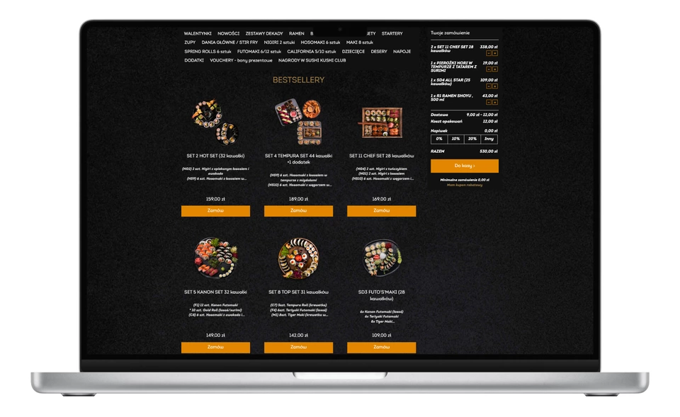 Sushi Kushi skupiło się na sprzedaży online poprzez własną stronę internetową oraz aplikację mobilną, umożliwiając klientom składanie zamówień bezpośrednio z własnych kanałów sprzedaży.