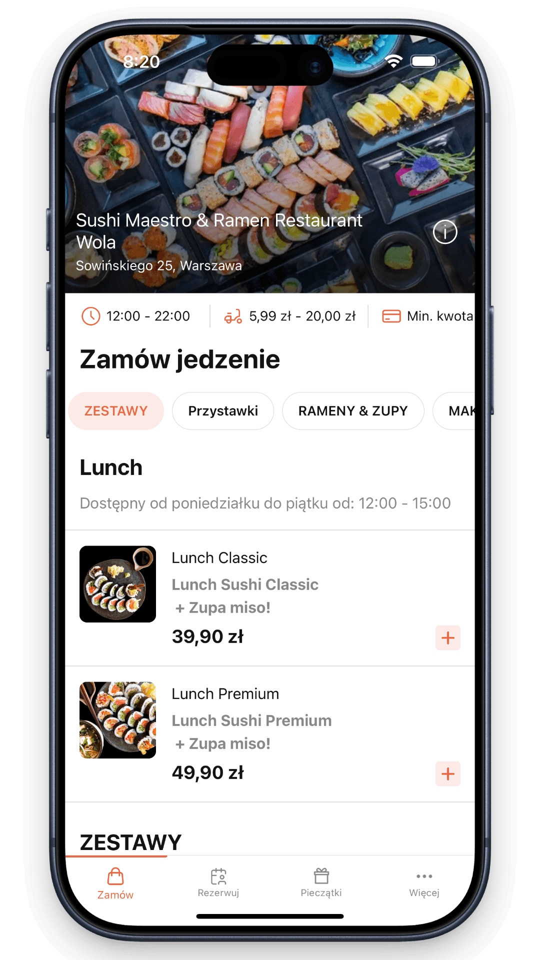 Własna aplikacja restauracji na iOS i Android buduje nawyk zamawiania bezpośrednio u Sushi Maestro. Klient ma dostęp do historii zamówień, ulubionych pozycji i ofert lojalnościowych, bez potrzeby korzystania z zewnętrznych platform.